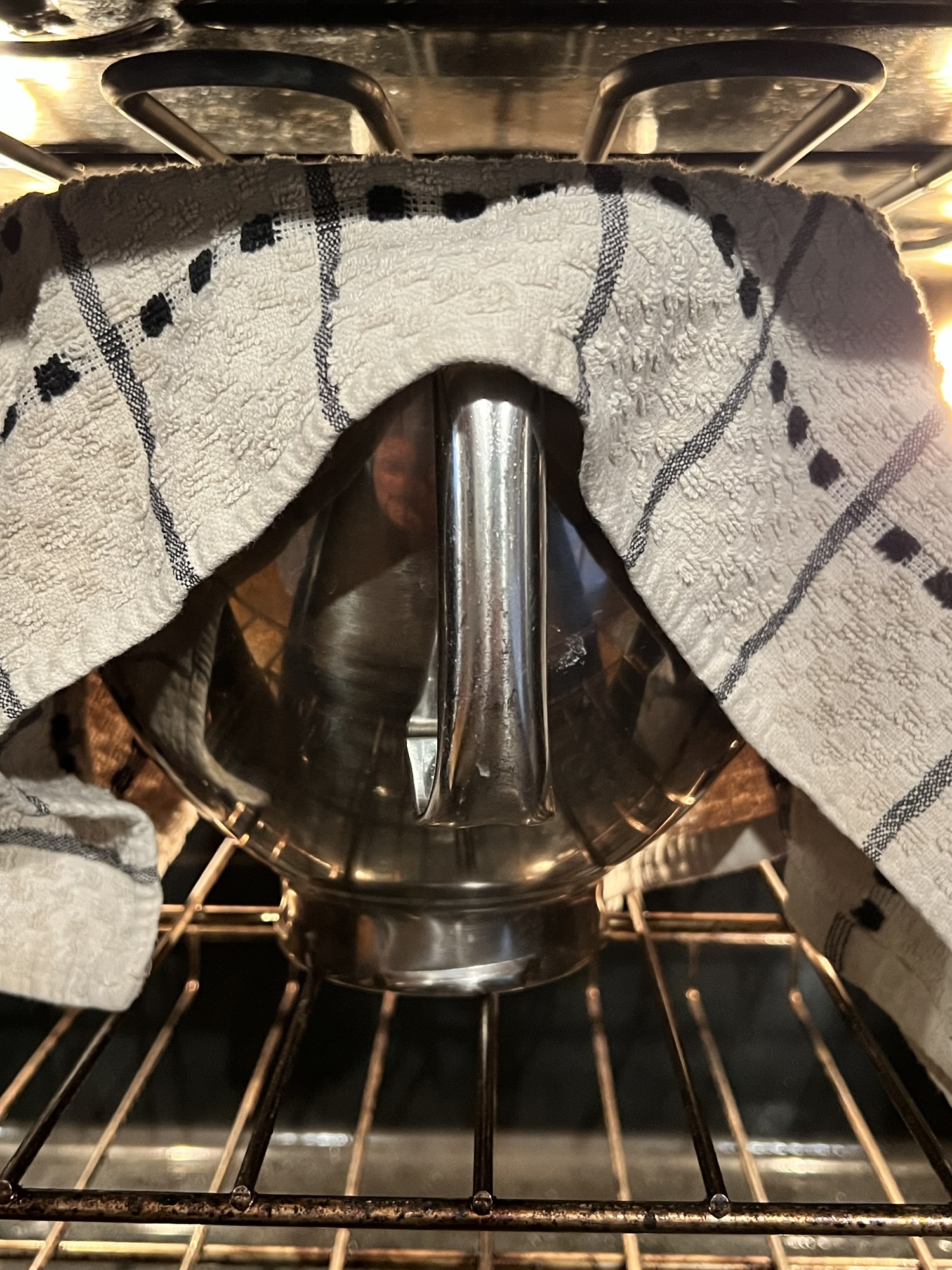 3. Cover and walk away 30 minutes (bowl in the oven with just the light on).